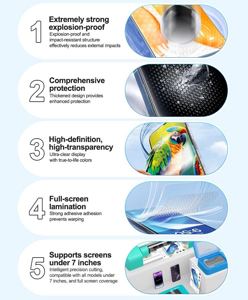 SUNSHINE SS-TP350 HIGH-DEFINITION EXPLOSION-PROOF HYDROGEL FILM 50PCS 7.0 INCH UNIVERSAL FOR SUNSHINE SS-890C INTELLIGENT CUTTING MACHINE