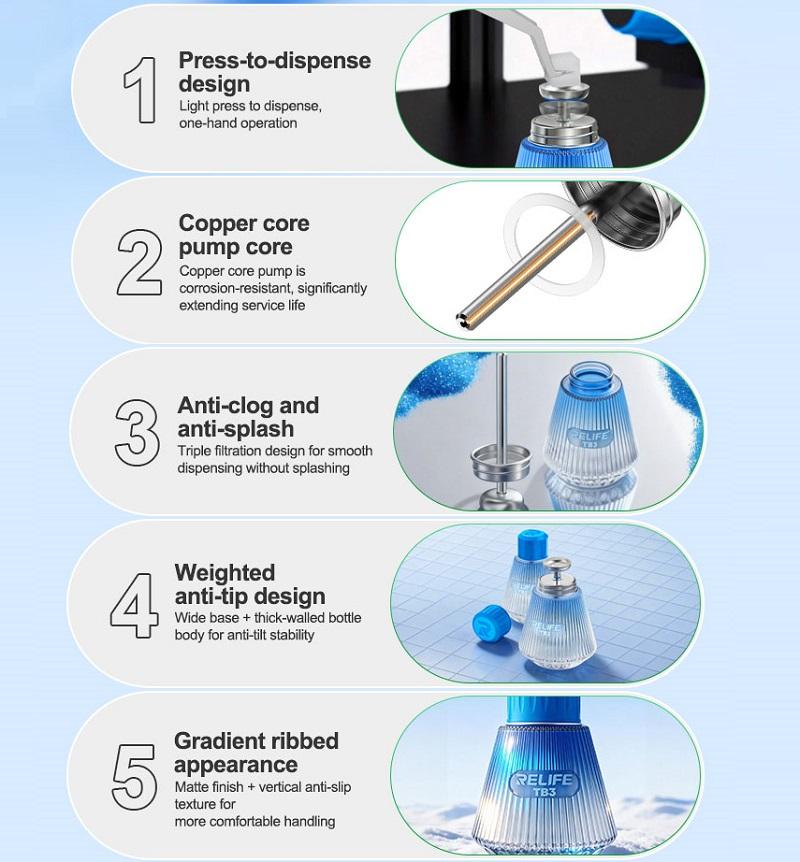RELIFE TB3 LANJING PRO SOLVENT GLASS BOTTLE FOR PCB CLEANING FLUID / ALCOHOL 150ML