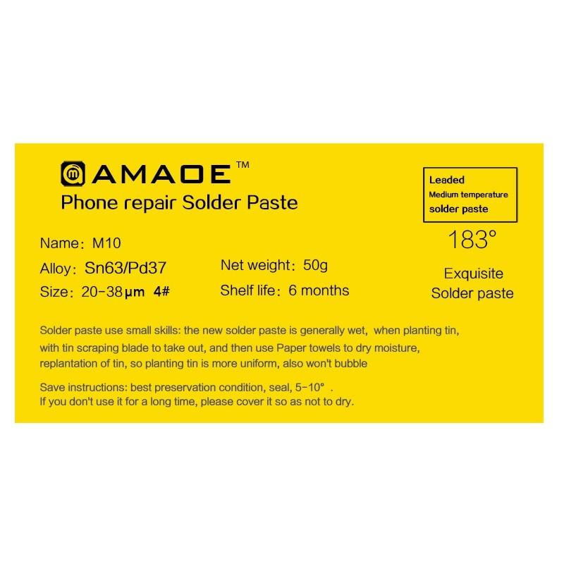AMAOE M10 LEAD-BASED SOLDER PASTE MICRONS 20-38UM WEIGHT 50G MEDIUM TEMPERATURE 183º