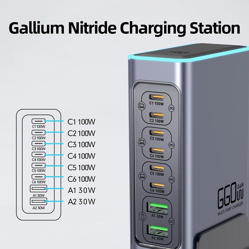 F8L 140W INTELLIGENT MULTI-PORT DESKTOP CHARGER (USB-C 100W 6 / USB-A 30W 2)